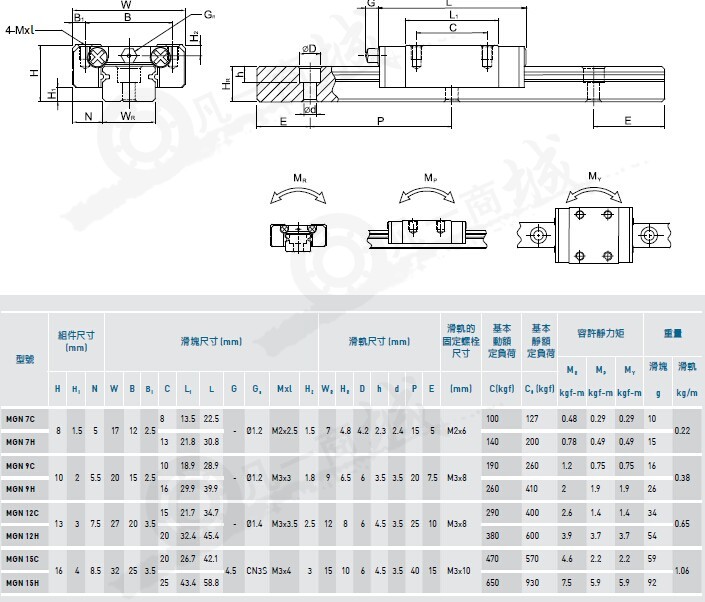 上銀直線導軌MGN微小型系列導軌具備非互換性型及互換性型兩種直線導軌,兩者規格尺寸相同,主要差異點在于互換性型之滑塊、導軌可單出互換使用,較便利,但其組合精度無法達到非互換性型之超高精度,不過由于HIWIN上銀在制造上有良好的尺寸控制及嚴格的質量要求,互換性型之組合精度目前已達到一定的水平,對不需配對安裝直線導軌的客戶而言,是一項很好的選擇。產品型號主要標明系列、尺寸、型式、精度等級、預壓等規格要求,以利訂貨時雙方對產品的確認。