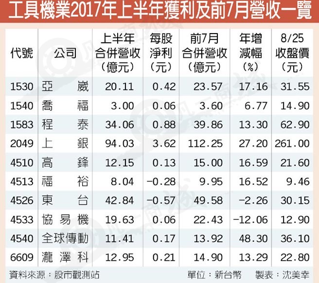 工具機(jī)接單持續(xù)好轉(zhuǎn),反映在下半年及獲利上,亞崴、程泰、上銀科技(hiwin)及東臺(tái)等大廠訂單能見(jiàn)度雖看到年底甚至明年首季,仍以集團(tuán)型態(tài)參加9月18日在德國(guó)漢諾威登場(chǎng)兩年一度歐洲工具機(jī)展?fàn)幦∮唵危鎏頎I(yíng)運(yùn)動(dòng)能。