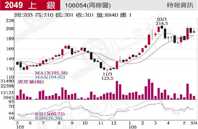 直線導軌及機器人三大主力產品需求旺,訂單持續成長,年底前訂單及產能滿載。上銀去年在美國芝加哥、德國歐芬堡、大陸蘇州廠三地興建新廠,今年陸續加入營運行列,在臺灣臺中精密園區二期及嘉義大埔美一期新廠預計年底完工,明年加入營運行列,今年合并營收可望年成長10%以上,續創歷史新高。