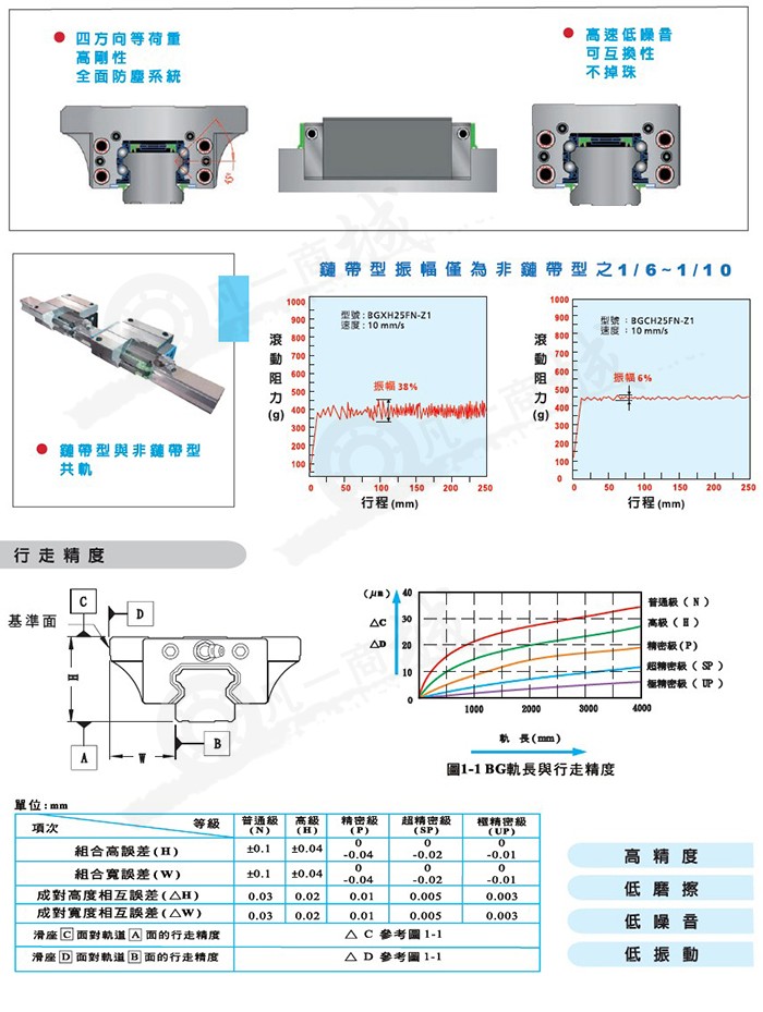STAF導軌具有高精度、低噪音、導程平順三大特點,擁有多項發明專利:靜音套管設計,鏈帶提升鋼珠聚油能力,循環鏈帶提升由潤均勻分布,