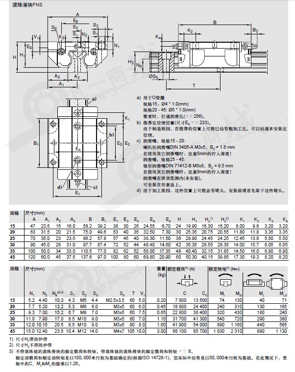 加裝件可以從滾珠滑塊的上面或下面通過(guò)螺紋連接安裝1)