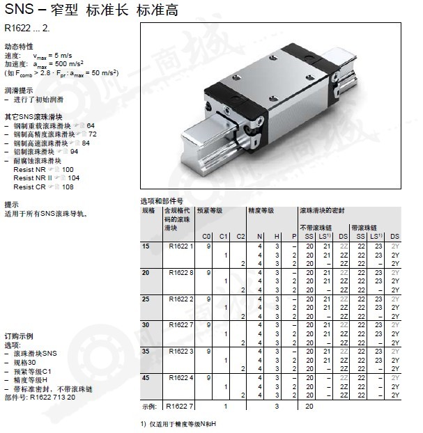 • 直線導(dǎo)軌Rexroth直線導(dǎo)軌SNS窄型系列R16223