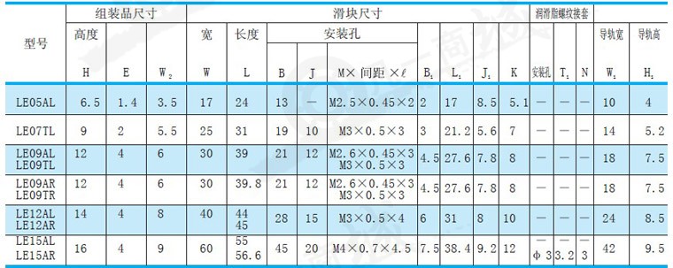 NSK直線導軌型號:LE05AL、LE07TL、LE09AL、LE09TL、LE09AR、LE09TR、LE12AL、LE12AR、LE15AL、LE15AR、LE07UL、LE09BL、LE09UL、LE12BL、LE15BL、LE05CL、LE07SL、LE09CL、LE09SL、LE12CL、LE15CL