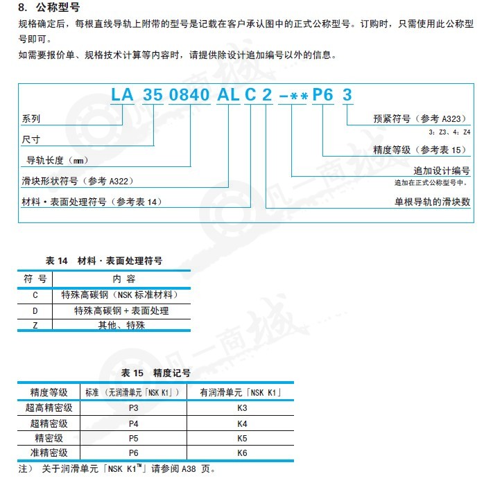 NSK導軌型號:PU05、PU07、PU09、PU12、PU15、PIU05、P1U07、P1U09、P1U12、P1U15