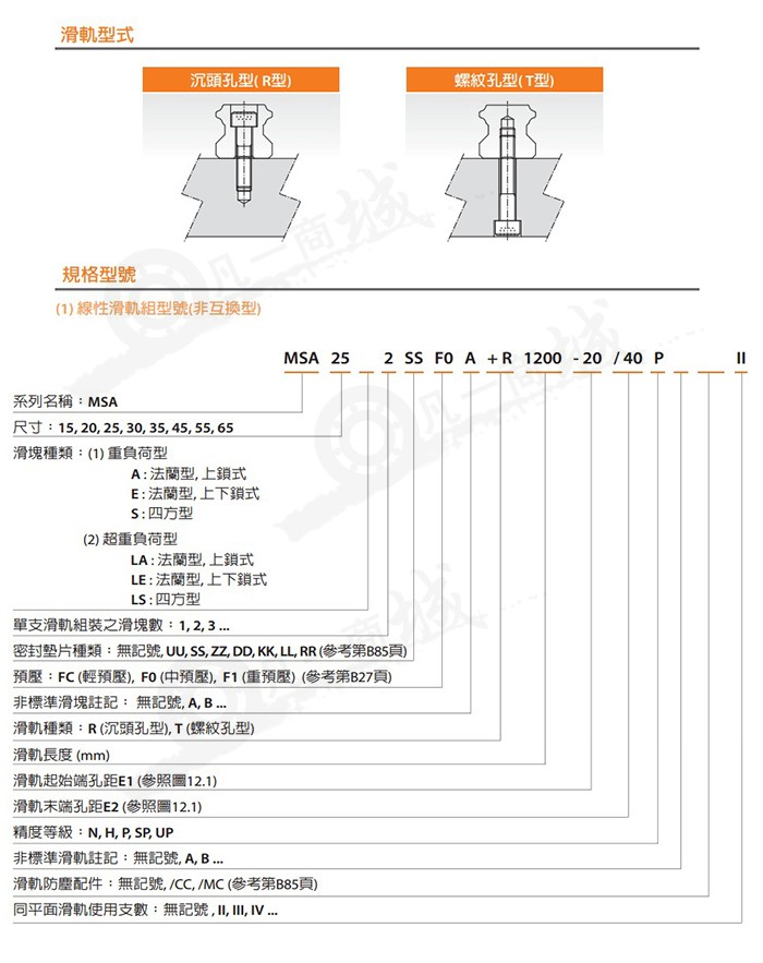 MSA系列直線導(dǎo)軌采用4列圓弧接觸式及45°觸角的鋼珠列設(shè)計(jì),提供徑向、反徑向及橫方向四方向的相同額定負(fù)荷能力,無(wú)論X、Y、Z等